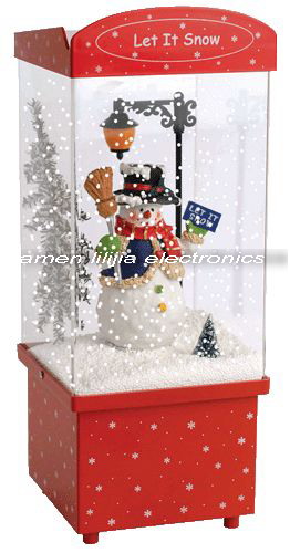 This Cute Snowglobes play music, light up and continuously blow snow! Just plug in your waterless electric snow globe and you have music, lights and continuously blowing snow! Comes with AC adapter.