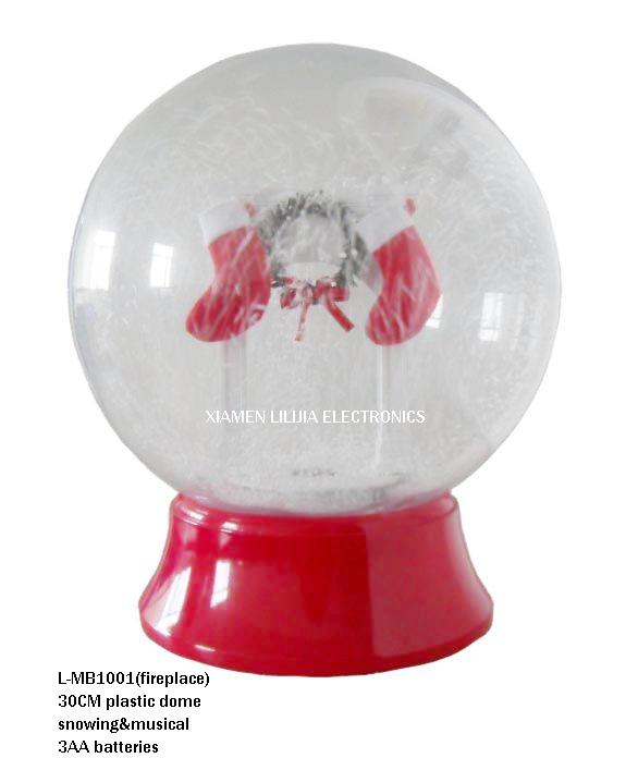 Animated Snow Globe with fireplace inside: 1)material: plastic, polyresin; 2) 300MM globe; 3) 3AA batteries; 4) blow snow, musical |