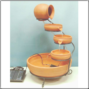This gorgeous water fountain is equipped with a 1.2-1.4 W solar power panel and includes a 5 meter cable.You can place the fountain in your beautiful garden and enjoy the sound and appearance of swiftly flowing water. There are 5 pots in this fountain set to give the waterfall a graceful, multi-tiered appearance.These pots are available in 3 designs and gentle, relaxing colors.You can choose from terracotta (320mm x 420mm) rustic white (250mm x 400mm) and red (available in either size). All of the pottery has water proof UV coating, and the brushless pump with a voltage stabilize controller will make the fountain run smoothly and quietly.